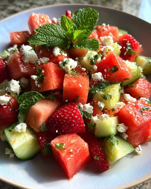 A vibrant and refreshing salad that combines sweet, juicy fruits with crisp cucumber and creamy feta cheese. Perfect for summer gatherings, BBQs, or a light, healthy side dish. Ingredients 4 cups cubed seedless watermelon 2 cups sliced fresh strawberries 1 large cucumber, diced 1 cup crumbled feta cheese Optional Dressing: 2 tablespoons fresh lime juice … Read more